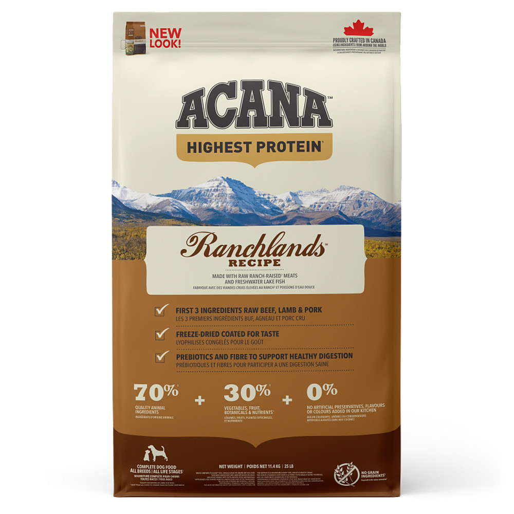 Acana Regionals Ranchlands é um alimento biologicamente adequado para cães de todas as raças e em qualquer fase de vida.