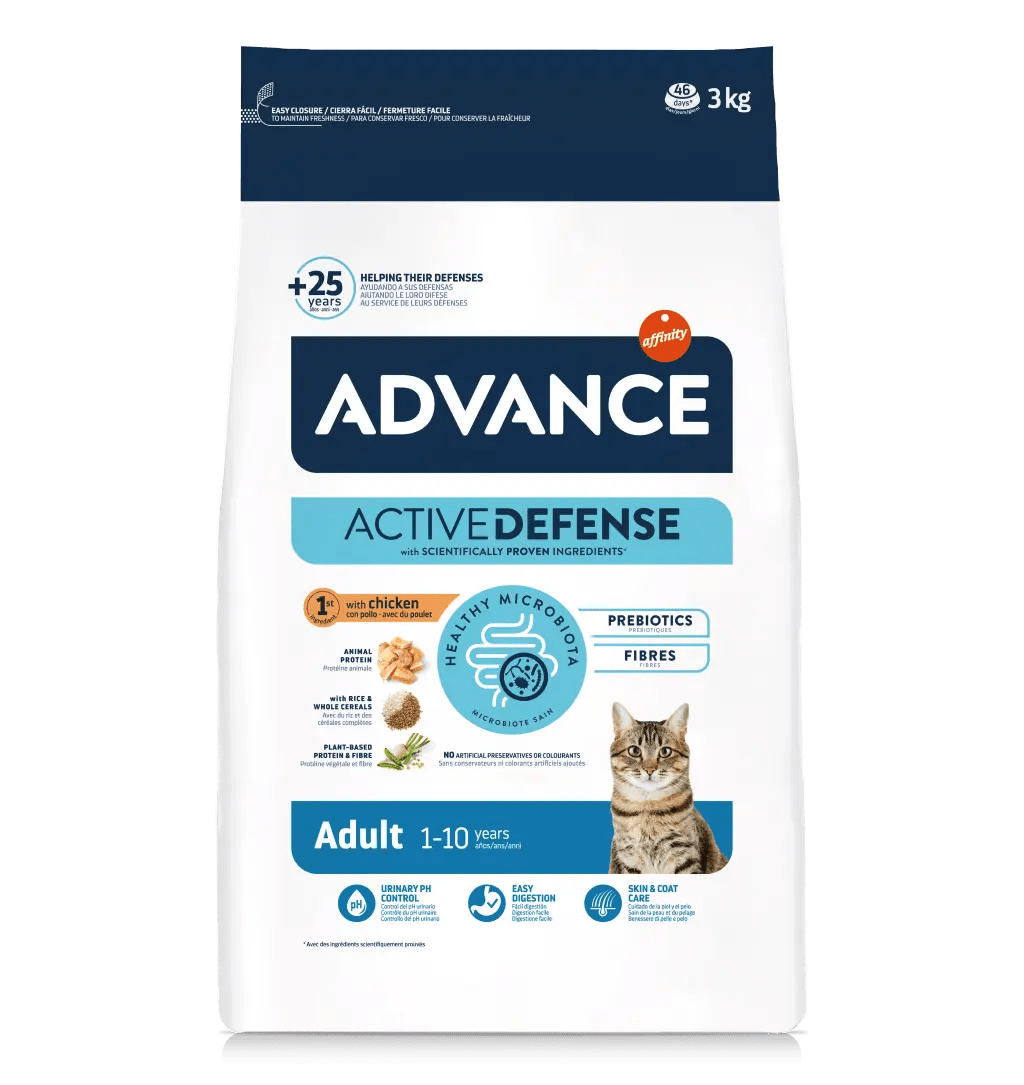 Alimento especialmente concebido para gatos adultos entre 1 e 10 anos de idade.