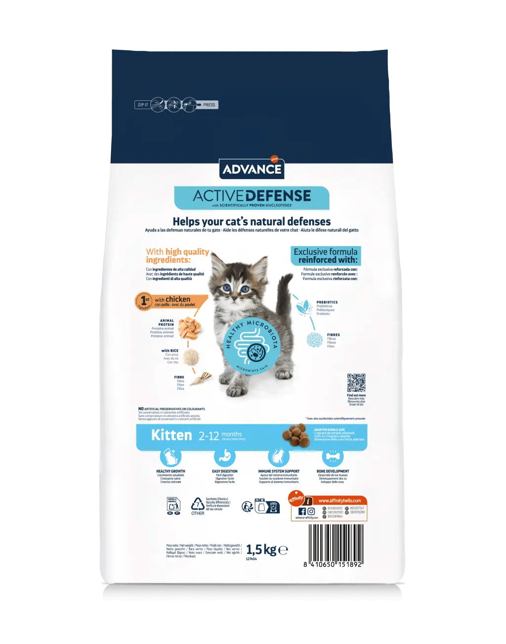 Adequado para gatos dos 2 aos 12 meses, fêmeas em fase de gestação ou lactantes. Inclui: alto conteúdo de proteínas e gorduras, óptima relação cálcio-fósforo e ácidos gordos ómega 3 e 6.
