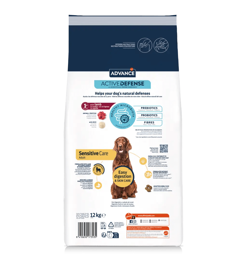 Borrego, proteina de alta qualidade e arroz, fonte de hidratos de carbono de fácil assimilação, para ajudar a digestão dos cães com sensibilidade digestiva.