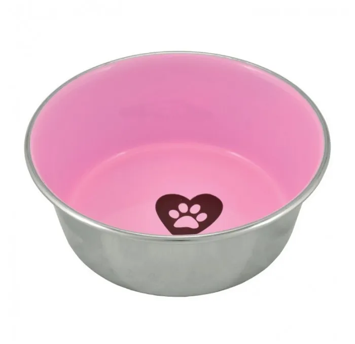 O comedouro Antiderrapante de Aço Inoxidável Rosa Love Paw é um comedouro-bebedouro de alta qualidade para cães e gatos. Está decorado com um detalhe  em coração rosa muito moderno e bonito. Além disso, a base deste comedouro é feita em aço inoxidável e vem com borracha para evitar escorregar ao comer/beber.