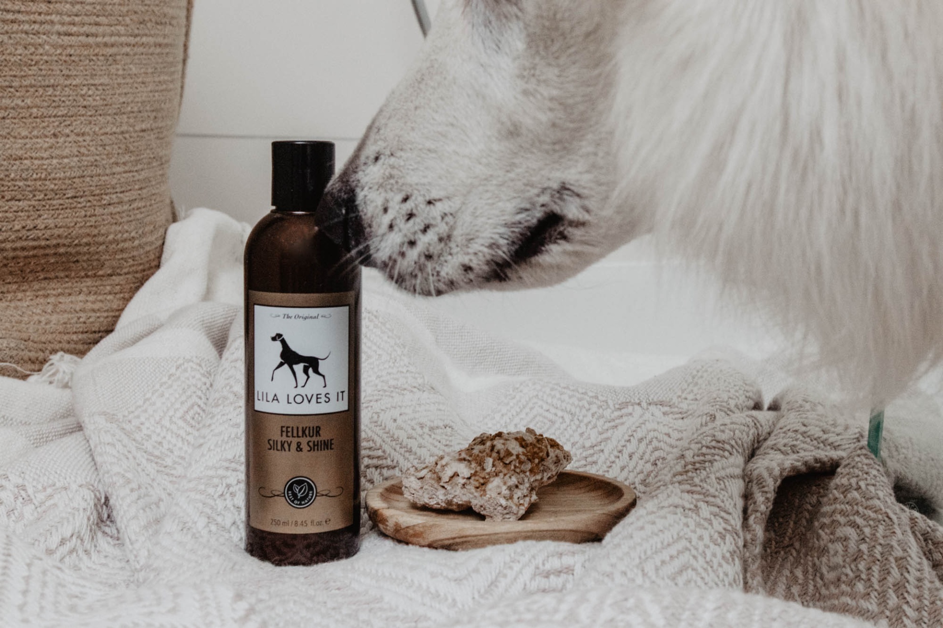 A combinação inovadora de ingredientes faz do tratamento de peles SILKY & SHINE um verdadeiro milagre. Pelos sem brilho e nodosos são repostos e tornam-se macios ao toque. A fórmula rica em nutrientes ajuda a regenerar a pele seca e põe fim à comichão. Aloe vera gel é um excelente hidratante e promove a renovação celular. O óleo de jojoba se assemelha ao próprio sebo do corpo e auxilia na hidratação da pele e do cabelo. O óleo de abacate é rico em vitaminas e fortalece a barreira da pele danificada e propensa a alergias. O ácido hialurônico mais zinco faz uma dupla de energia altamente bem-sucedida para aliviar as condições da pele irritada.
