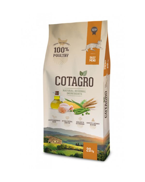 Cotagro Daily Menu Gato é um alimento completo e equilibrado para gatos adultos com um nível de atividade normal, independentemente da sua raça e tamanho. Além disso, tem uma combinação equilibrada de proteínas e gorduras para evitar o excesso de peso, ajudando a manter uma ótima condição física.