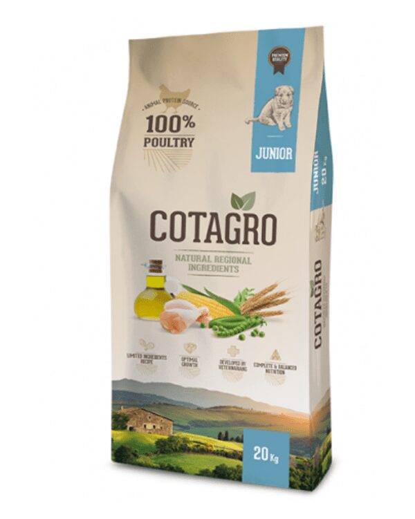 Cotagro Júnior é um alimento completo recomendado para promover o crescimento e desenvolvimento contínuo dos cachorros (desde o desmame até à idade adulta).