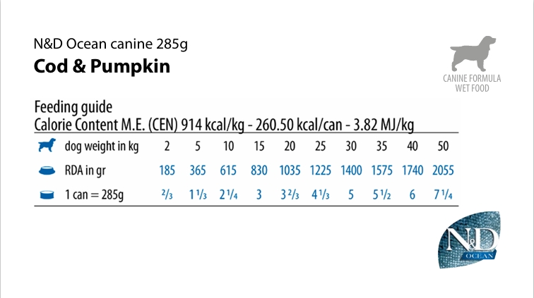Farmina N&D Ocean é um alimento húmido completo, para cães adultos de todas as raças. Formulado com bacalhau e abóbora. Um alimento cozinhado cuidadosamente a vapor. Sem conservantes artificiais adicionados.