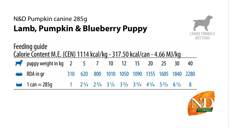 Farmina N&D Pumpkin é um alimento húmido completo, para cachorros de todas as raças. Formulado com cordeiro, criado em pastagens, abóbora e mirtilos. Um alimento cozinhado cuidadosamente a vapor. Sem conservantes artificiais adicionados.