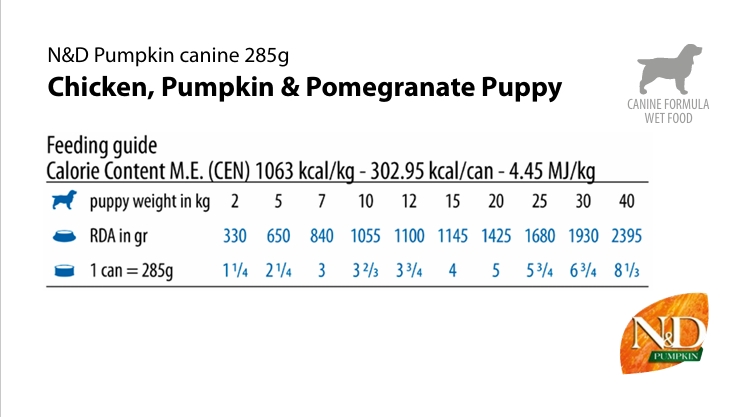 Farmina N&D Pumpkin é um alimento húmido completo, para cachorros de todas as raças. Formulado com frango, criado ao ar livre e de origem italiana, cozinhado cuidadosamente a vapor. Sem conservantes artificiais adicionados.