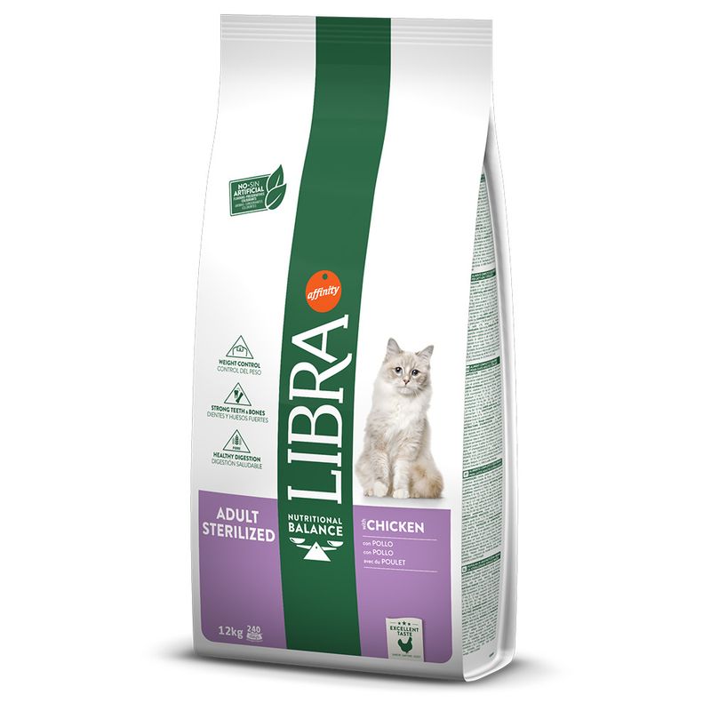 Alimento completo e equilibrado para gatos adultos. Especialmente formulado para gatos esterilizados, para prevenir sobrepeso e problemas urinários.