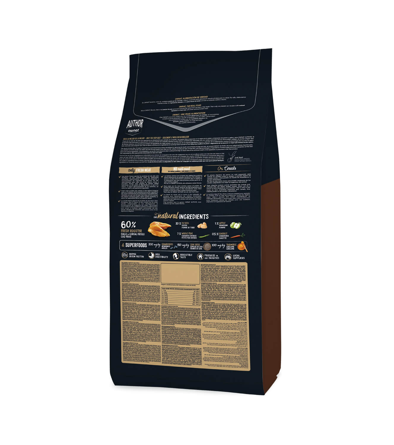 Se quiser oferecer ao seu amigo peludo um alimento com um sabor diferente para variar a sua dieta diária e não deixar nada na sua tigela, deve servir-lhe a ração para cães Author Natural da Ownat. Tem uma receita especial que adiciona frango fresco criado ao ar livre misturado com frutas e legumes para criar um croquete altamente delicioso que fornece proteínas de alto valor nutricional e alta energia para manter o seu animal de estimação saudável e forte. Ele vai adorar!