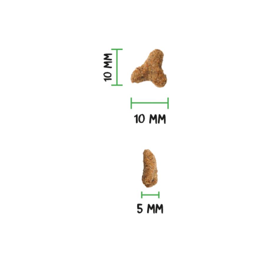 Proteína: 37 %, teor de matéria gorda: 9,5 %, fibra bruta: 8 %, matéria inorgânica: 7,5 %, humidade: 8 %, ómega 6: 1,3 %, ómega 3: 0,36 % (EPA: 0,1 %, DHA: 0,14 %), cálcio: 0,9 %, fósforo: 0,8 %. Energia metabolizável: 3.450 kcal/kg