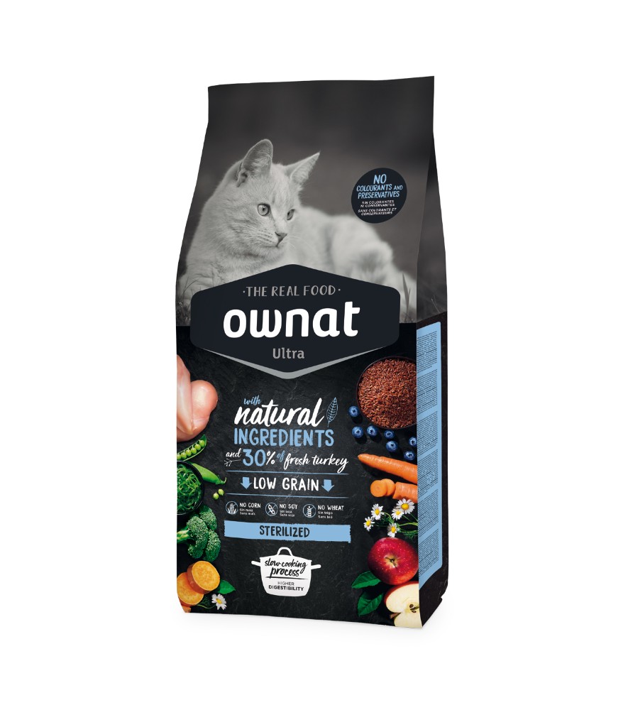 Os gatos esterilizados têm menos necessidades energéticas e têm mais propensão para o excesso de peso. O nosso alimento ajuda-os a manter o peso ideal, já que inclui uma quantidade reduzida de gorduras, mantendo simultaneamente uma elevada proporção de proteínas para garantir a correta manutenção da musculatura e uma excelente condição física.