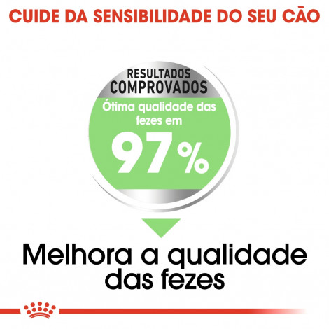 Por que não experimentar oferecer o patê como uma deliciosa cobertura do croquete? Os resultados falam por si, dado que o ROYAL CANIN® Digestive Care Maxi aumenta em até 97% a qualidade da matéria fecal, a prova definitiva de uma boa saúde intestinal. Isto significa que os resultados obtidos com o ROYAL CANIN® Digestive Care Maxi só comprovam o sucesso deste produto.