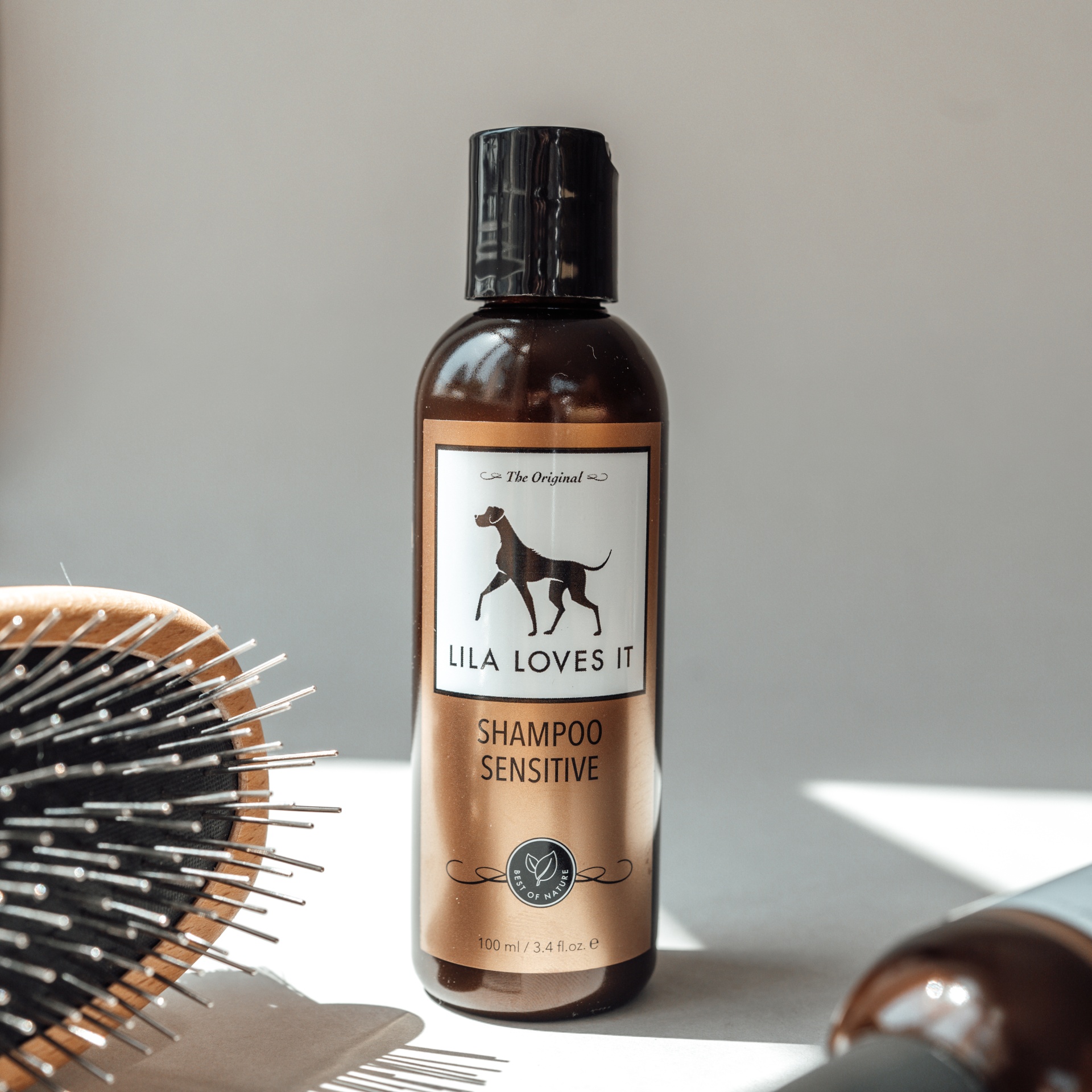 CHAMPÔ SENSITIVE é um champô extra suave para filhotes e cães que sofrem de alergias. Limpa suavemente a pelagem sem irritar a pele e o nariz. A fórmula é deliberadamente minimalista e, em comparação com o nosso champô Shine & Comb, também dispensa óleos essenciais naturais. A aloe vera é profundamente hidratante, o óleo de amêndoa ajuda a pele e cabelo a reter a humidade, apoiando a sua camada lipídica natural. Extratos de calêndula e camomila acalmam e nutrem.