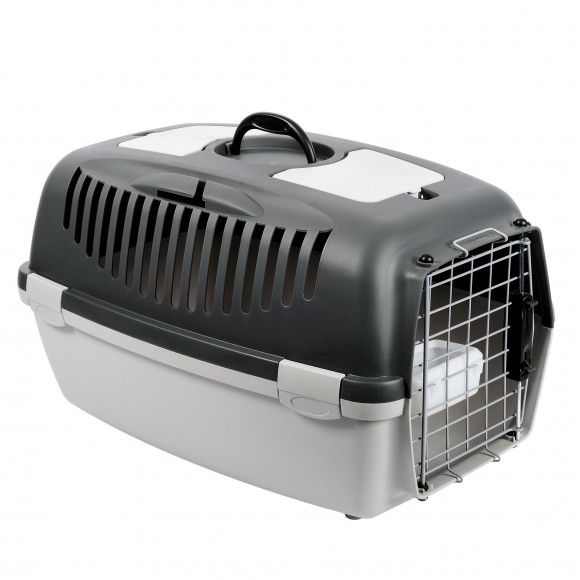 Transportadora para animais de estimação, prática e versátil. Com fendas laterais, que garantem uma ótima ventilação, porta em metal, ganchos para cintos de segurança e alça ergonómica. Segura para o seu pet e fácil de limpar e de montar. Ideal para levar o seu amiguinho em viagem!